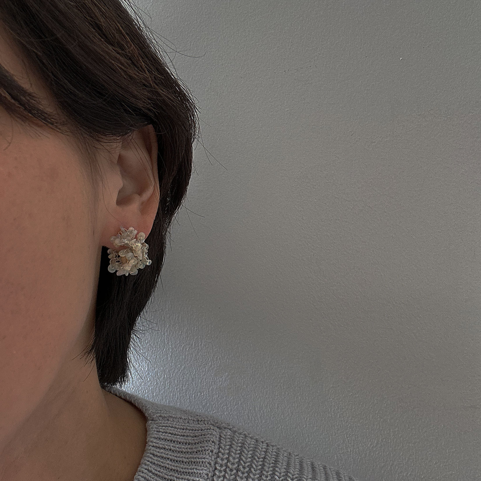 移ろう季節や感情、光の揺らぎをイメージして、やさしく編み上げた「うつろいピアス」。